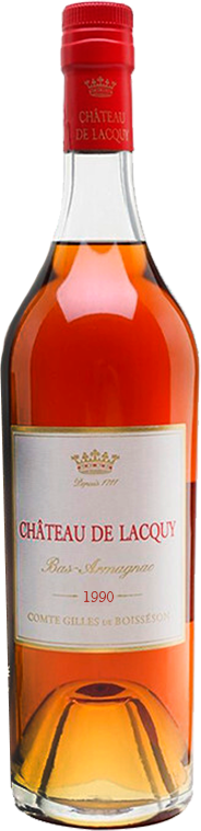 Chateau de Lacquy, Bas-Armagnac, 1990 — превосходный миллезимный арманьяк, обладающий тонким, но сложным ароматом и округлым, сбалансированным вкусом потрясающей длительности. Арманьяк был создан из винограда сорта Бако. Из него получилось вино, которое имело довольно высокое содержание сахара. Дистилляция состоялась в ноябре 1990 года в собственных перегонных кубах хозяйства. Выдержка арманьяка проходила в 420-литровых дубовых бочках (наполовину новых, наполовину старше 7 лет) в подвалах Шато де Лаки, которые являются одними из старейших и лучших в регионе. При производстве арманьяка не используются холодная фильтрация, красители и искусственные добавки.