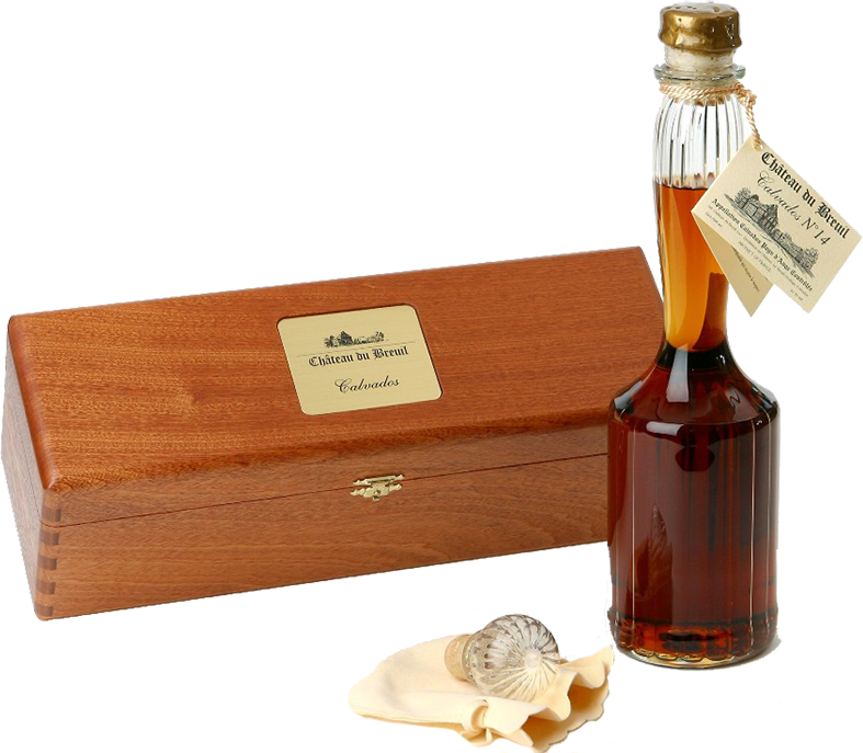 Гамма кальвадосов шато включает напитки разной выдержки - от ароматных и стильных молодых V.S.O.P. до мягких и сбалансированных старых "резервов", а также редких винтажей. Звезда коллекции - 40-летний кальвадос Royal. Исключительное качество напитков подчеркивается элегантной формой бутылок Château du Breuil, вручную опечатанных сургучом и обвязанных нитью.