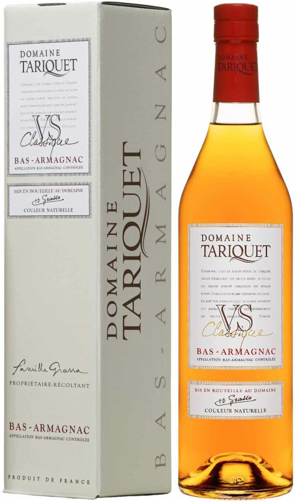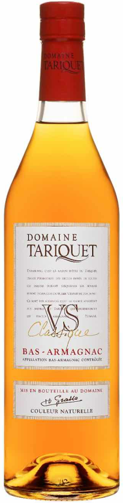 Domaine Tariquet, V.S. Classique — элегантный, мягкий арманьяк, который производится из спиртов, полученных методом перегонки вин из винограда сортов Уни Блан (60%) и Бако (40%). Выдерживается арманьяк в подвалах дома Тарике в дубовых бочках не менее 3 лет.