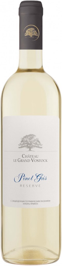 Chateau le Grand Vostock, Pinot Gris Reserve — белое сухое вино, отличающееся питкостью, свежестью и отличным балансом, яркая новинка от Шато ле Гран Восток. Вино производится из винограда сорта Пино Гри, который выращивается на виноградниках хозяйства на глинисто-известняковых почвах. Сбор урожая осуществляется вручную по достижении ягодами оптимального уровня спелости. На винодельне плоды подвергаются бережному прессованию и ферментации при контролируемой температуре в стальных чанах, чтобы сохранить свежесть и яркость сортовых характеристик.
