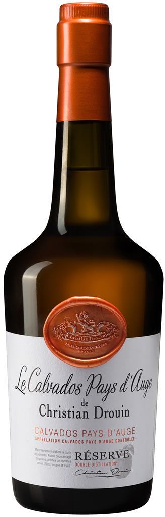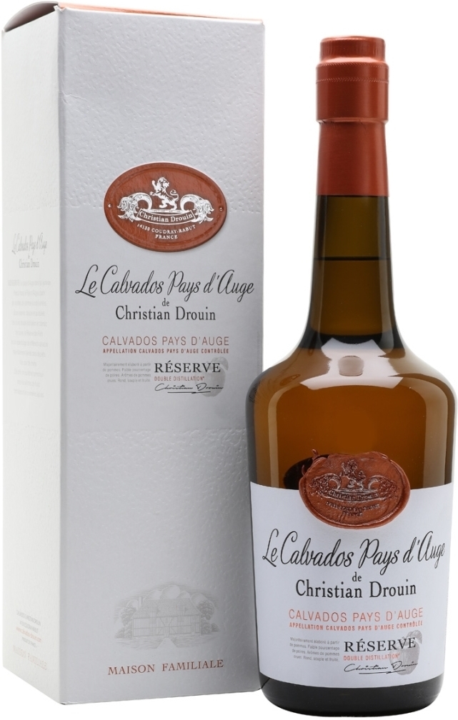 Christian Drouin, Calvados Pays d'Auge, Reserve - кальвадос, демонстрирующий характерные яблочные оттенки во вкусе и аромате. Он производится методом двойной дистилляции в чугунных перегонных кубах с последующей выдержкой в дубовых бочках не менее трех лет. Раньше кальвадос назывался "Coeur de Lion".