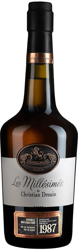 Миллезимный Кальвадос — это напиток определенного года дистилляции, который выдерживается в дубовых бочках не менее 20 лет перед продажей. Год, когда Кальвадос разливают в бутылки, указывается на этикетке. Благодаря тонкостям выдержки, каждый напиток неповторим! Christian Drouin, Calvados Pays d'Auge 1987 года в изысканной деревянной коробке может стать идеальным подарком на любой праздник! Особенно интересен миллезимный кальвадос как подарок имениннику с таким же годом рождения.