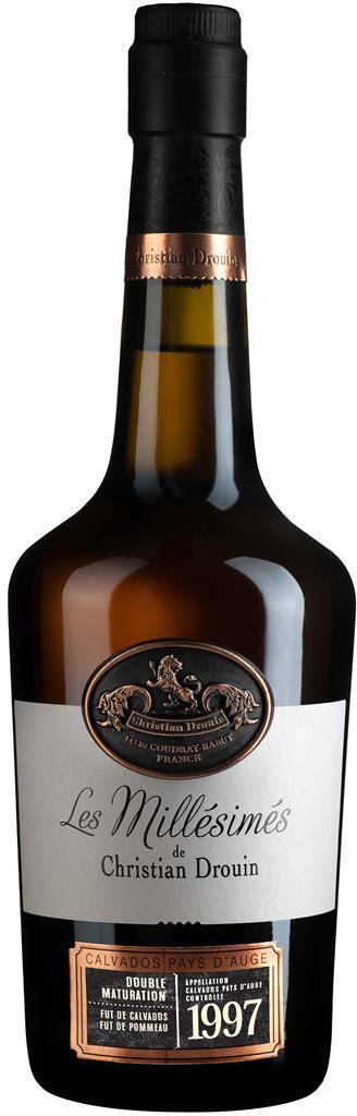 Миллезимный кальвадос — это напиток определенного года дистилляции, который выдерживается в дубовых бочках не менее 20 лет перед продажей. Год, когда кальвадос разливают в бутылки, указывается на этикетке. Благодаря тонкостям выдержки, каждый напиток неповторим! Christian Drouin, Calvados Pays d'Auge, 1997 года в изысканной деревянной коробке может стать идеальным подарком на любой праздник!