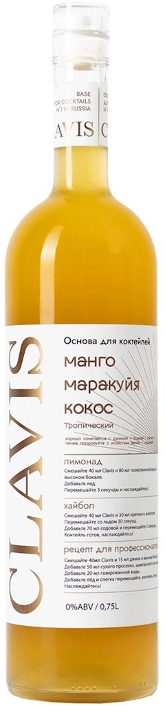 Клавис, Манго-Маракуйя-Кокос — экзотический микс, который переносит в путешествие по тропическим садам. В основе микса — сочное, сладкое манго, мгновенно наполняющее яркими эмоциями, как в солнечный летний день. Кисло-сладкая маракуйя придает напитку свежесть и оригинальность. Завершает тропическую композицию кокос, дарующий кордиалу кремовую текстуру и нежную мягкость. Это сочетание мгновенно создает атмосферу летнего отдыха и безмятежности. В коктейлях кордиал хорошо сочетается с джином, водкой, ромом, игристым вином или содовой.