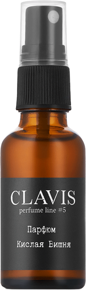 Clavis, Perfume Line № 5, Sour Cherry — оригинальный парфюм для любого коктейля с ароматом вишни. Парфюм производится исключительно из натуральных компонентов: вода питьевая очищенная, спирт (0,01%), натуральный пищевой ароматизатор. Поэтому парфюм от "Clavis" является абсолютно безопасной пищевой добавкой, способной придать напитку новые яркие фруктовые тона. Парфюм выпускается в небольшой бутылочке, оснащенной удобным распылителем. Отлично сочетается с виски, джином, водкой, ромом или содовой.