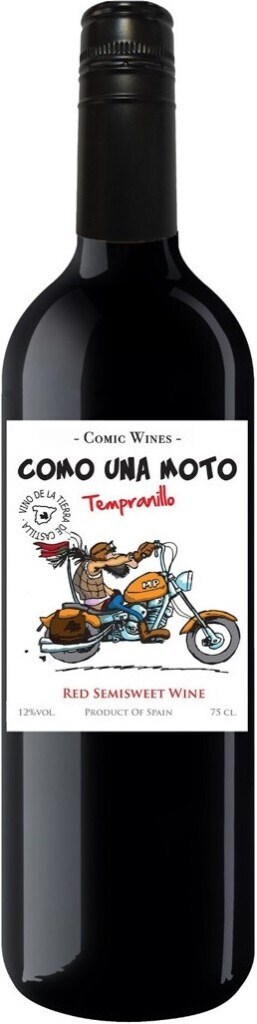 Como Una Moto, Tempranillo Semisweet — приятное красное полусладкое вино из винограда сорта Темпранильо, выращенного на высоте 700 метров над уровнем моря на каменистых почвах виноградников компании. Урожай собирается по достижении ягодами оптимального уровня спелости. На винодельне ягоды подвергаются ферментации в стальных чанах при контролируемой температуре. Брожение принудительно останавливается, когда остаточный сахар достигает необходимого уровня. Затем вино еще некоторое время "отдыхает" в емкостях из нержавеющей стали и бутилируется.