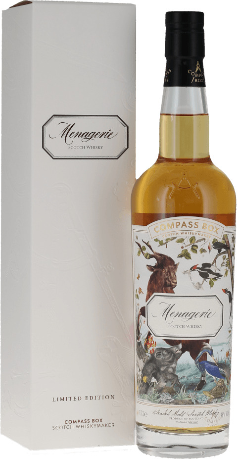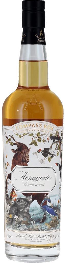 Compass Box, "Menagerie" — купажированный солодовый виски, в производстве которого используются виски Mortlach, Deanston, Glen Elgin и Laphroaig, а также солодовый купаж Highland, выдержанный в бочках из французского дуба. На этикетке изображены всевозможные животные и птицы. Виски подается в качестве дижестива в чистом виде или с добавлением льда. Также хорошо гармонирует с сигарой.