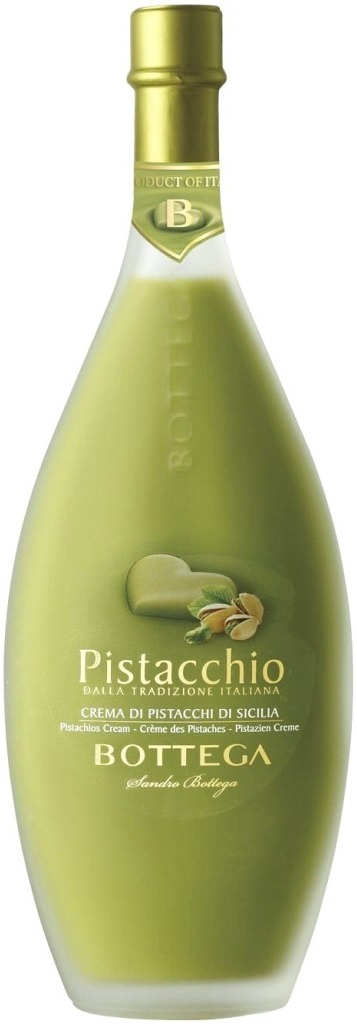 Bottega, Crema di Pistacchio — сливочный ликер с приятно сладким вкусом и насыщенным фисташковым ароматом. Фисташковые деревья, традиционно произрастающие на Ближнем Востоке, сейчас пышно цветут на склонах Этны, большого сицилийского вулкана. Плоды фисташкового дерева издавна славились своими питательными свойствами. Фисташки для приготовления ликера "Bottega" Pistacchio собираются исключительно на Сицилии. Орехи обрабатываются специальным методом, который позволяет сохранять все их ценные свойства, в том числе и богатый аромат. Из фисташек готовят пасту, которую затем смешивают со спиртом, водой и сахаром, создавая кремообразный ликер с округлым, бархатистым вкусом и пьянящим ароматом сицилийских фисташек. Последний штрих в создании "Bottega" Pistacchio — граппа, благодаря которой ликер приобретает уникальный и неповторимый характер. Ликер не содержит молочных продуктов, поэтому его можно употреблять при непереносимости молочных белков или лактозы.