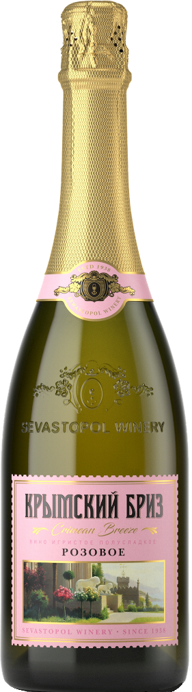 Крымский Бриз, Розовое Полусладкое — легкое и мягкое игристое вино, для создания которого производитель использует виноград сортов Каберне Совиньон, Шардоне, Алиготе и Рислинг. Компания выращивает урожай на своих собственных виноградниках, расположившихся в пределах Севастополя. Вино изготавливается в соответствии с 70-летними традициями Севастопольского винзавода. Игристое вино наполнено фруктово-ягодными тонами, демонстрирует приятную свежесть и легкость.
