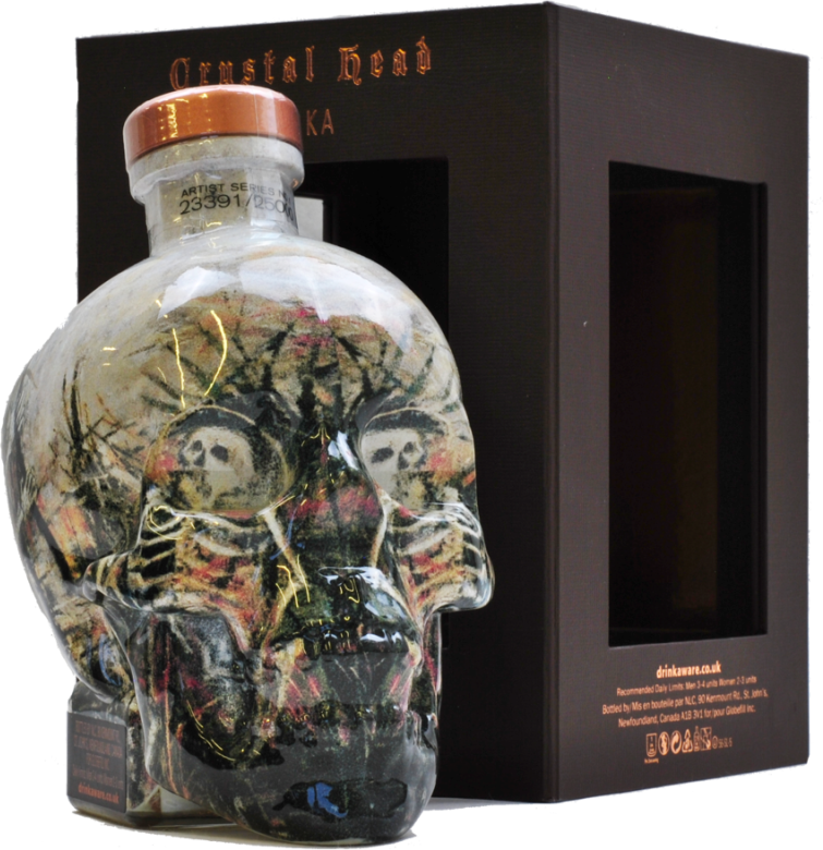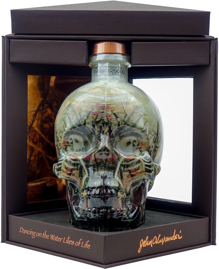Этот вызывающий воспоминания художник, известный как живописец экологически сознательных пейзажей и сатирических образных работ, основан на выразительных картинах Джона Александра. Его картина, написанная маслом на холсте 1988 года «Танцы на кувшинках жизни», выставлена в Художественном музее Далласа и отмечена в этой изысканной бутылке художника. В бутылке находится оригинальная водка Crystal Head, созданная из канадской кукурузы.