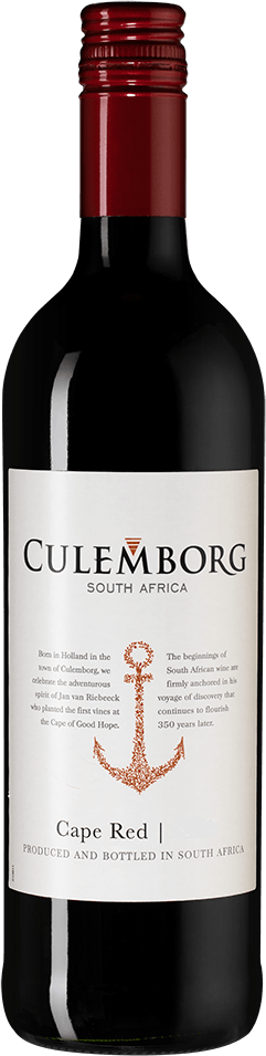 Culemborg, Cape Red, обладающее богатыми нотками джема из летних фруктов и сложными оттенками специй, создано из красных сортов винограда, собранного в разных областях Западного Кейпа. Урожай каждой области винифицируют отдельно, выдерживают непродолжительное время в дубовых бочках, а затем купажируют, чтобы получить стильное, многогранное вино.