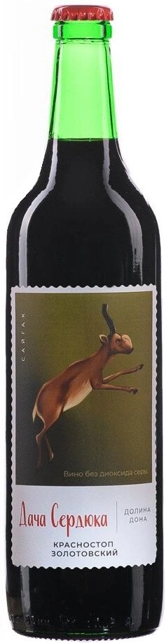 Красное сухое вино Дача Сердюка, Красностоп Золотовский изготовлено из винограда одноименного сорта, выращенного в Ростовской области, на правом берегу Дона. Ягоды собраны вручную. Брожение производилось без контроля температуры в стальных емкостях, в них же сусло выдерживалось в течение года. В производстве не использовался диоксид серы, что позволило сохранить эффект натурального "фермерского" вина. Насыщенный ягодный вкус Красностопа Золотовского хорошо дополнит сытные блюда.