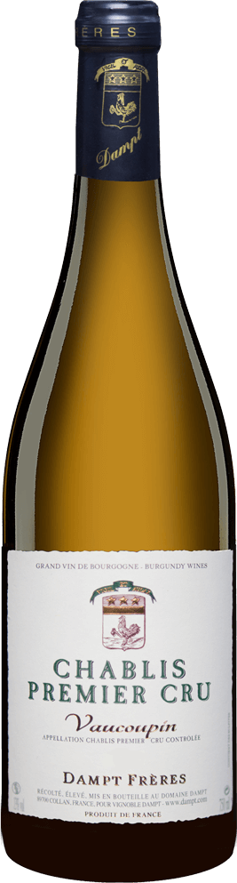 Белое сухое вино Dampt Freres, Chablis Premier Cru "Vaucoupin" создано из винограда сорта Шардоне, собранного вручную со старых лоз, возраст которых превышает 50 лет. 20% вина ферментируется в дубовых бочках, а остальные 80% — в резервуарах из нержавеющей стали, благодаря чему в аромате и вкусе вина ощутимы приятные минеральные нюансы. Шабли Премье Крю "Вокупан" рекомендуется употреблять в качестве аперитива, а также в паре с рыбой, морепродуктами, закусками, белым мясом, сырами.