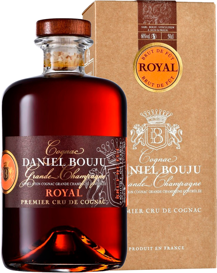 Удивительно мягкий, сложный вкус коньяка Daniel Bouju, "Royal" приятно поразит настоящих знатоков и гурманов. В изготовлении коньяка используется виноград сорта Уни Блан, выращенный в регионе Гранд Шампань на собственных виноградниках Дома Бужу. Его спирты более 15 лет выдерживаются в бочках из лимузенского дуба, затем купажируются при бочковой крепости 60%. Коньяк разливается по бутылкам без фильтрации и окрашивания карамелью.