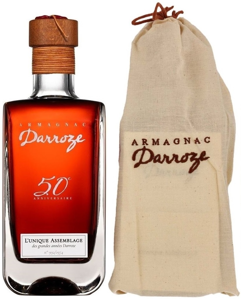 Darroze, L’Unique Assemblage, 50e Аnniversaire - это редчайший юбилейный релиз арманьяка от Darroze: создатели выпустили всего 1974 декантера. Он стал чем-то вроде альманаха, в котором отражена история дома: в ассамбляж вошли о-де-ви самых знаковых годов в истории семьи Дарроз. 1974 — год основания Фрэнсисом Даррозом: 50-летние арманьяки привносят в ассамбляж танинную структуру, ноты сухофруктов и специй. 1982 — создание первых арманьяков из поместья Сент-Обен. 1985 — строительство погребов в Рокфоре. Оба года были жаркими, эти арманьяки придают ассамбляжу объём и полнотелость. 1994 — Марк Дарроз присоединился к своему отцу: в этом же году в хозяйстве переходят на бочки с меньшей степенью обжарки, чтобы подчеркнуть фруктовые ноты о-де-ви. 2002 — открытие центра приема гостей. 2011 — строительство и расширение погребов в Лабастиде д'Арманьяк. О-де-ви этих лет самые молодые и привносят ноты свежих фруктов в ассамбляж.