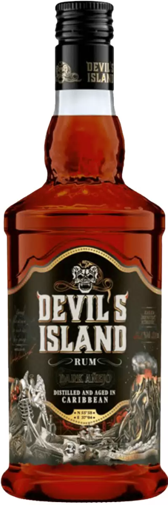 Devil's Island, Dark Anejo — классический выдержанный ром, идеальный в качестве дижестива, родиной которого является Доминиканская Республика. Местные условия позволяют выращивать сахарный тростник отличного качества и производить из него великолепный ром, славящийся по всему миру. Дистилляция и выдержка напитка также осуществляется в жарких условиях Доминиканы. Созревание в дубовых бочках глубокого обжига длится не менее 24 месяцев. За время, проведенное в бочке, спирты приобретают насыщенный темный цвет и мягкий вкус. Розлив осуществляется в России на заводе "Георгиевский", который принадлежит крупнейшей российской алкогольной компании Beluga Group. Ром обладает достаточно демократичной ценой при высоких показателях качества.