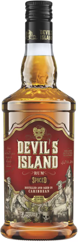 Devil's Island, Spiced — темный ром с характерными пряными нюансами во вкусоароматической палитре, идеальный для приготовления коктейлей, родиной которого является Доминиканская Республика. Местные условия позволяют выращивать сахарный тростник отличного качества и производить из него великолепный ром, славящийся по всему миру. Дистилляция и выдержка напитка также осуществляется в жарких условиях Доминиканы. Созревание в дубовых бочках может длиться от 14 до 60 месяцев. За время, проведенное в бочке, спирты приобретают насыщенный цвет и мягкий вкус. Розлив осуществляется в России на заводе "Георгиевский. Традиции Качества", который принадлежит крупнейшей российской алкогольной компании Novabev Group. Ром обладает достаточно демократичной ценой при высоких показателях качества.