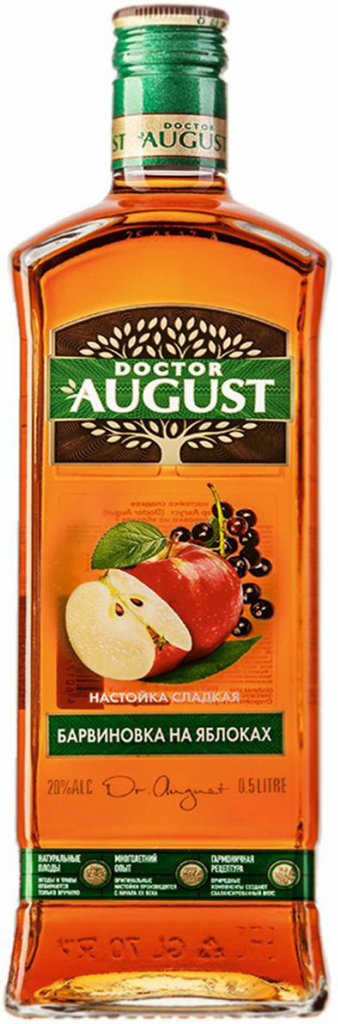 Настойка Доктор Август, Барвиновка на яблоках, настойка сладкая, 0.5 л.