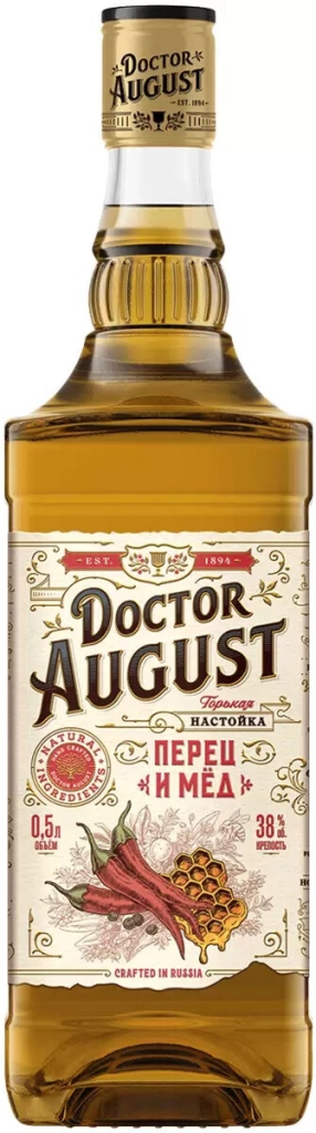 Настойка Доктор Август, Перец и Мед, настойка горькая, 0.5 л.