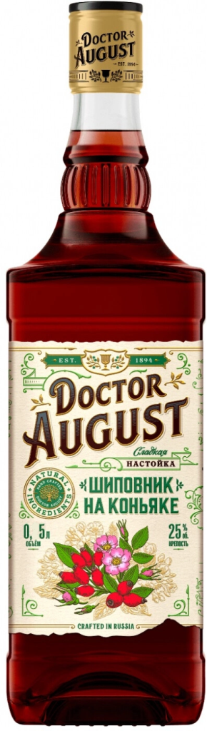 Настойка Доктор Август, Шиповник на коньяке, настойка сладкая, 0.5 л.