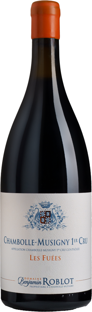 Domaine Benjamin Roblot, Chambolle-Musigny 1er Cru, Les Fuees — ароматное и многослойное красное сухое вино из винограда сорта Пино Нуар, который собирается с виноградника "Les Fuees" класса Премье Крю в Шамболь-Мюзиньи. По сути являясь южным продолжением знаменитого участка "Bonnes-Mares" Grand Cru, этот виноградник производит крепкие, но элегантные вина, которые имеют пикантный вкус. Терруар "Les Fuees" оказался хорошо подходящим для виноградарства, с его каменистыми, богатыми известняком почвами, покрывающими склоны, которые способствуют естественному снижению урожайности. Виноградник имеет выгодную юго-восточную экспозицию. Посаженные здесь лозы получают много утреннего солнечного света, необходимого для фенольной зрелости, а прохладные бургундские вечера сохраняют свежую кислотность, что обеспечивает идеальный баланс. Все участки, принадлежащие Domaine Benjamin Roblot, с 2003 года обрабатываются органическими методами.
