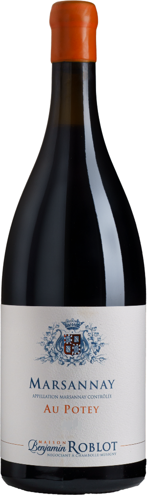 Domaine Benjamin Roblot, Marsannay, Au Potey — роскошное, превосходно структурированное вино, в которое невозможно не влюбиться. Оно изготавливается из винограда сорта Пино Нуар с виноградника "У Поте", который обрабатывается органическими методами. Собранный урожай ферментируется в деревянных чанах с контролируемой температурой с использованием исключительно натуральных дрожжей. После 10 дней ферментации сусло прессуется вертикальным прессом для дальнейшего извлечения фенолов и вкуса. Затем вино выдерживается в бочках из французского дуба в течение 18 месяцев (часть бочек являются новыми). Перед розливом по бутылкам вино не осветляется и не фильтруется, сера добавляется в минимальном количестве.