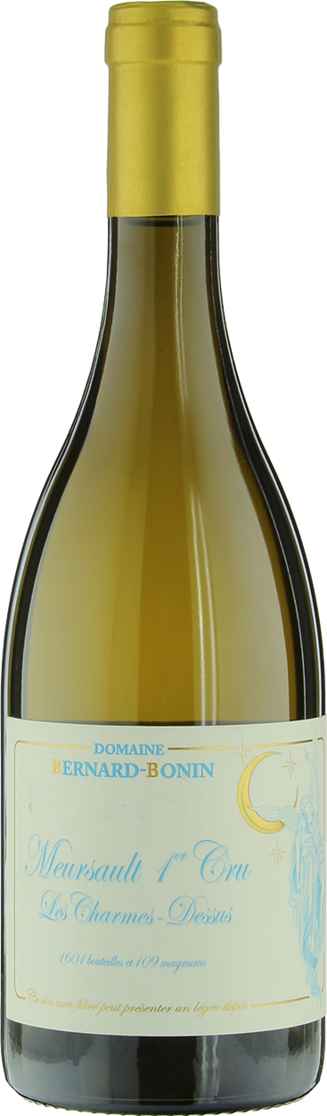 Domaine Bernard-Bonin, Meursault 1-er Cru, Les Charmes-Dessus — богатое, серьезное, очень красивое натуральное белое вино из винограда сорта Шардоне, выращенного в Мерсо на органическом участке виноградника "Ле Шарм-Дессю" класса Премье Крю. Сбор урожая производится вручную, на винодельне Шардоне чрезвычайно мягко прессуется для получения высококачественного сусла. После ферментации с натуральными дрожжами вино выдерживается в течение 19 месяцев: 15 месяцев — в дубовых бочках, 4 месяца — в стальных резервуарах. По бутылкам вино разливается без очистки или фильтрации в соответствии с лунным календарем.