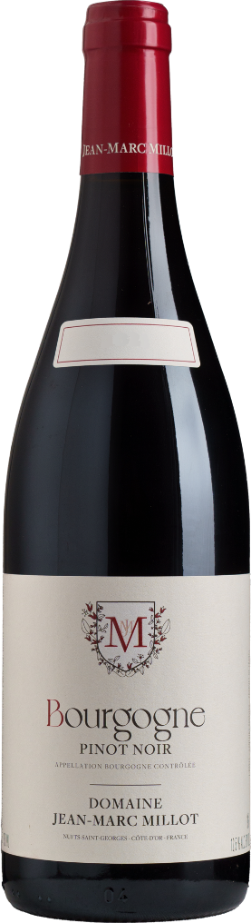 Domaine Jean-Marc Millot, Bourgogne Pinot Noir — роскошное красное вино с утонченным ароматом и изысканным вкусом, в производстве которого используется виноград сорта Пино Нуар, произрастающий на известково-глинистых почвах. Сбор урожая проводится вручную, на винодельне плоды подвергаются сортировке на сортировочном столе. Винификация сусла проходит в стальных чанах с температурным контролем и длится 15-20 дней. Выдерживается вино 10-12 месяцев в бочках из французского дуба. Потенциал вина составляет 7-10 лет.