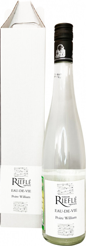 Domaine Riefle, Eau-de-Vie, Poire William — фруктовый бренди, изготовленный путем ферментации отборных плодов спелой груши сорта Вильямс и их дальнейшей дистилляции в традиционном эльзасском аламбике небольшого размера. Полученный дистиллят выдерживается в домжанах (большие стеклянные бутылки) в течение не менее 6 месяцев. Непосредственно перед розливом дистиллят разводится чистой водой до 45% содержания спирта. Грушевый бренди идеален в качестве дижестива, а также ингредиента для коктейлей.
