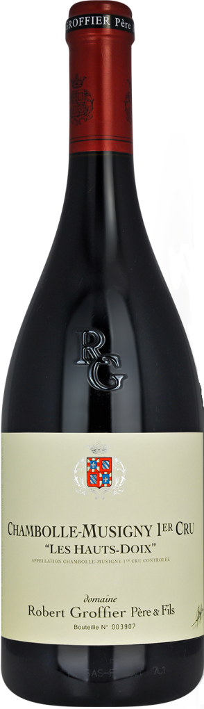 Domaine Robert Groffier Pere & Fils, Chambolle-Musigny 1er Cru "Les Hauts-Doix" — яркое, аппетитное красное сухое вино, изготовленное из винограда сорта Пино Нуар, который выращивается на небольшом участке (0,9 га) виноградника "Les Hauts-Doix" класса Премье Крю в апелласьоне Шамболь-Мюзиньи. Название коммуны Chambolle происходит от латинского Campus Bellenos (в переводе — поле Беллена, галльского божества горячих источников и врачевания). "Les Haut-Doix" — малоизвестный, но все же очень выдающийся виноградник, расположенный между "Les Amoureuses" и "Les Charmes". Его уникальный терруар предлагает пикантные и глубокие вина. На винограднике применяются методы устойчивого сельского хозяйства.