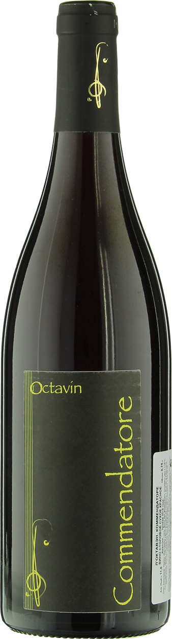 Domaine de l'Octavin, Commendatore - оригинальное красное вино из региона Жюра, в котором обильные фруктовые оттенки эффектно сочетаются с землистыми и пряными нотами. Вино изготавливается из винограда сорта Труссо, собранного со старых лоз на винограднике "Les Corvees", почвы которого состоят из юрского мергеля с серых суглинков. Возраст лоз превышает 50 лет. Урожай собирается вручную и полностью отделяется от гребней. При изготовлении вина применяется невероятно долгая 7-9-месячная мацерация, алкогольная ферментация с нативными дрожжами в резервуарах из нержавеющей стали и выдержка на тонком осадке в течение 11 месяцев. Перед розливом по бутылкам вино не фильтруется, сера не добавляется.