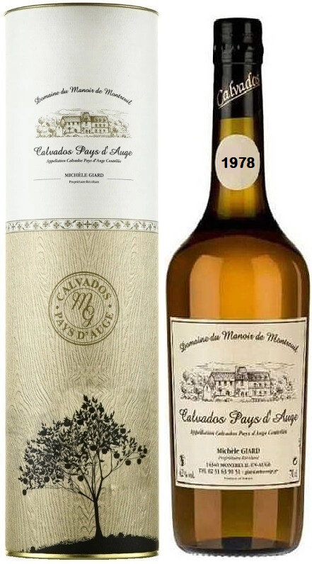 Domaine du Manoir de Montreuil, Calvados Pays d'Auge, 1978 — выдержанный кальвадос из Нижней Нормандии, производимый из различных сладких, горько-сладких, кислых и горьких сортов яблок. Яблоки собирают в конце осени, очищают вручную и оставляют на открытом воздухе до полного созревания. Затем их измельчают и прессуют, чтобы получить сок, который сбраживают в сухой сидр, после чего дважды дистиллируют в медных перегонных кубах. Полученные спирты выдерживают в старых французских бочках из черешчатого дуба. Выдержка винтажа 1978 года длилась 44 года. Перед розливом по бутылкам кальвадос разбавляют чистой водой до крепости в 42%. Кальвадос рекомендуется употреблять в чистом виде как дижестив, с изысканными мясными закусками, сырами, сладкой выпечкой и десертами. Можно использовать для создания коктейлей.