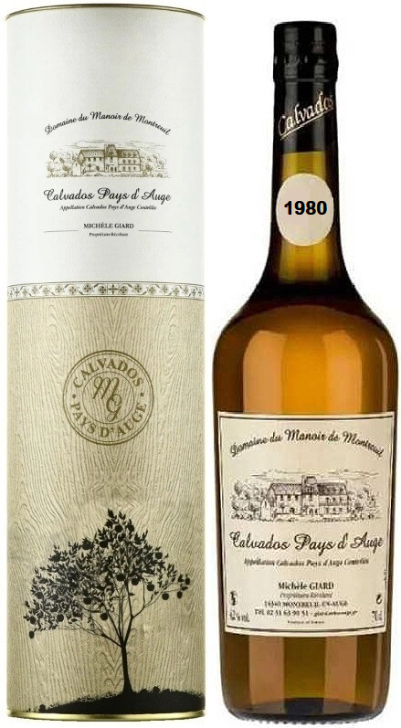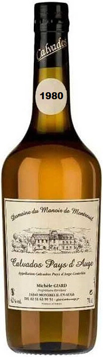Domaine du Manoir de Montreuil, Calvados Pays d'Auge, 1980 — выдержанный кальвадос из Нижней Нормандии, производимый из различных сладких, горько-сладких, кислых и горьких сортов яблок. Яблоки собирают в конце осени, очищают вручную и оставляют на открытом воздухе до полного созревания. Затем их измельчают и прессуют, чтобы получить сок, который сбраживают в сухой сидр, после чего дважды дистиллируют в медных перегонных кубах. Полученные спирты выдерживают в старых французских бочках из черешчатого дуба. Выдержка винтажа 1980 года длилась 42 года. Перед розливом по бутылкам кальвадос разбавляют чистой водой до крепости в 42%. Кальвадос рекомендуется употреблять в чистом виде как дижестив, с изысканными мясными закусками, сырами, сладкой выпечкой и десертами. Можно использовать для создания коктейлей.