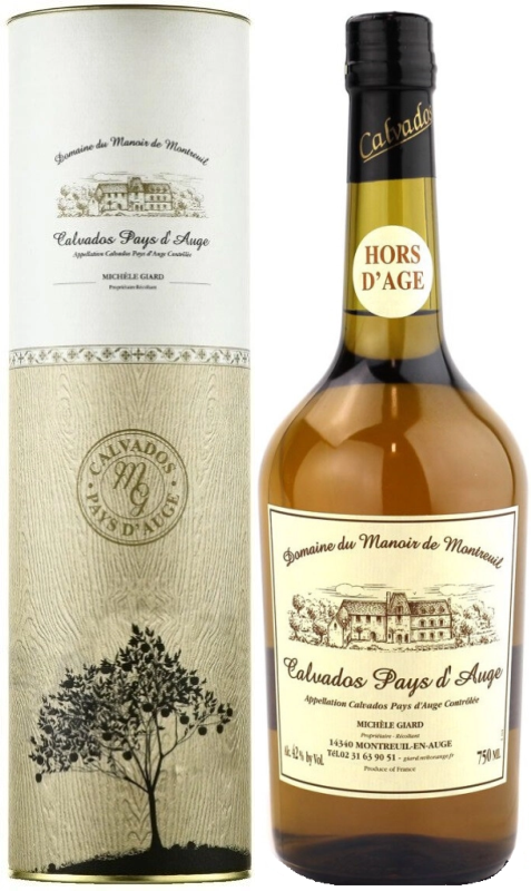 Domaine du Manoir de Montreuil, Calvados Pays d'Auge, Hors d'Age — выдержанный кальвадос, обладающий ярким фруктовым ароматом и приятным, стойким вкусом. В купаж кальвадоса входят яблочные спирты высшего качества, созданные путем двойной дистилляции из натурального яблочного сидра из сладких, горько-сладких, кислых и горьких сортов яблок. Выдержка кальвадоса в старых дубовых бочках длилась восемь лет. Кальвадос рекомендуется употреблять в чистом виде после еды или со сладкой выпечкой.