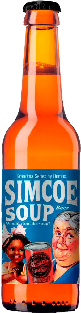 Светлое нефильтрованное пиво "Simcoe Soup" относится к линейке "Grandma Series". Дизайны этикеток выполнены в стиле рекламы супов 1950-х годов, на которых изображена добрая старуха, передающая свои кулинарные знания молодым поколениям.