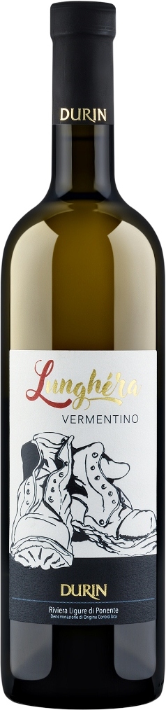 Durin, Vermentino, Lunghera, Riviera Ligure di Ponente - органическое белое сухое вино, созданное из винограда сорта Верментино. Ягоды произрастают на виноградниках с рыхлыми каменисто-глинистыми почвами. Средний возраст виноградных лоз составляет 22 года. По окончании сбора урожая плоды подвергаются бережному прессованию с последующей ферментацией в стальных резервуарах с применением автохтонных дрожжей "пье-де-кюв". Выдерживается вино на осадке в течение 6 месяцев. Ежегодный объем производства составляет всего 2800 бутылок. На этикетке изображены старые ботинки Антонио Бассо.