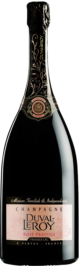 Роскошное шампанское Duval-Leroy, Rose Prestige Premier Cru обыгрывает тему гармонии и соблазнения в современном контексте. Вино изготавливается из винограда сортов Шардоне и Пино Нуар. Шампанское обладает лососевым цветом с деликатными пузырьками, которые напоминают мелкий жемчуг, струящийся через горлышко бутылки, дизайн которой придумала Кэрол Дюваль-Леруа, а также хорошо сбалансированным вкусом и запоминающимся ароматом с нотками герани, имбиря и инжира. Дюваль-Леруа понравится ценителям элегантных и тонких розовых шампанских вин. Это шампанское идеально сочетается с любыми десертами из красных фруктов.
