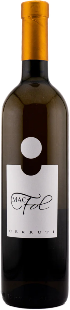 Ezio Cerruti, MacFol — оригинальное, без излишеств, простое и очень питкое белое вино, изготовленное из винограда сорта Москато Бьянко, который выращивается органическими методами на виноградниках поместья. Урожай собирается исключительно вручную по достижении ягодами оптимальной спелости. Спонтанная ферментация с натуральными дрожжами и 5-дневная мацерация протекают без контроля температуры. Выдерживается вино в емкостях из стекловолокна.