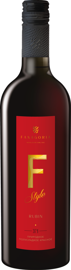 Красное полусладкое вино "Ф-Стиль" Рубин создано из винограда сорта Рубин Голодриги, выращенного на фанагорийских виноградниках винодельческого региона "Кубань. Таманский полуостров" с контролем урожайности. Виноград собирается вручную, когда ягоды достигают оптимальной степени зрелости. После тщательной сортировки и отделения гребней ягоды подвергают ферментации в пижажных винификаторах при регулируемой температуре. Яблочно-молочное брожение на мезге проходит в емкостях из нержавеющей стали. Вино прекрасно в качестве дижестива, отлично сочетается с ягодными и шоколадными десертами, ягодным мороженым, сладкой выпечкой.