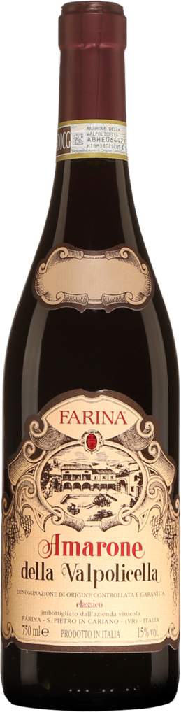 Вино Farina, Amarone della Valpolicella Classico было создано из тщательно отобранного винограда, произрастающего на виноградниках Сан-Пьетро в Кариано. Почвы виноградников богаты вулканическими породами, гравием и известняком. Урожай собирали вручную в середине сентября, на винодельне ягоды подверглись сортировке. Далее последовал 120-дневный процесс сушки винограда в специальных аппаратах, из-за чего ягоды потеряли 40% от своего первоначального веса, а содержание сахара значительно повысилось. Виноград отделили от гребней и прессовали в середине января. Затем сусло подвергли холодной мацерации с последующим добавлением дрожжей и легким повышением температуры. Процесс ферментации проходил без контроля температуры, но с постоянной перекачкой. Перед выдержкой вино аккуратно отделили от осадка и дважды очистили. Старение 70% вина происходило в славонских дубовых бочках, а остальных 30% — в барриках на протяжении 24 месяцев. После бутилирования вино еще некоторое время "отдыхало" в погребах винодельни.