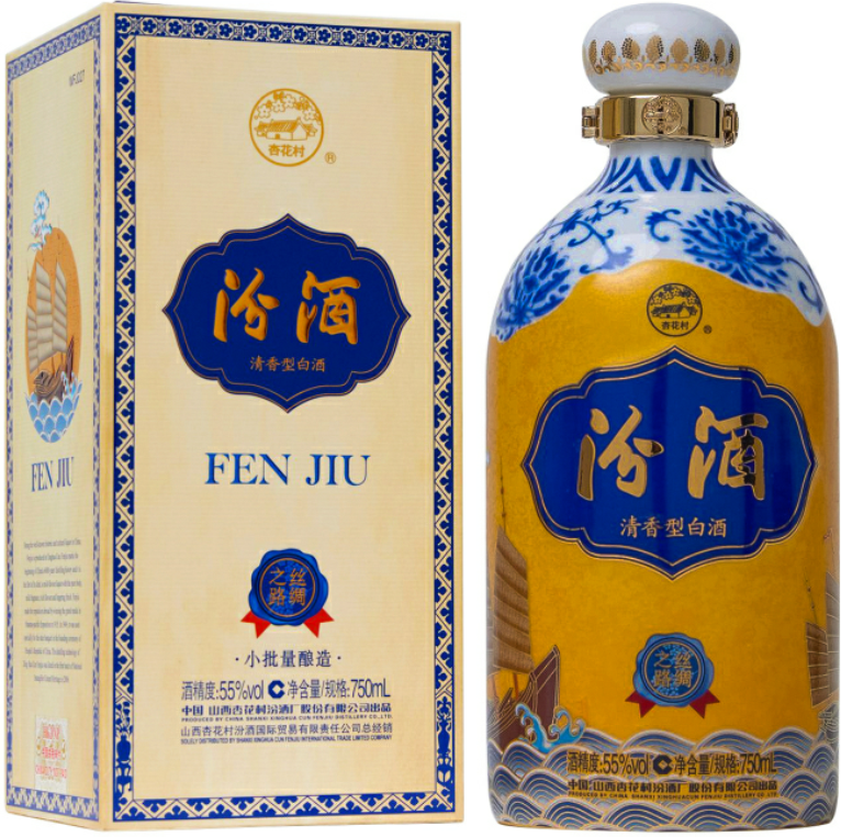 Fenjiu, Fenjiu, Silu, Silk Road Series, Baijiu 55° - считается самым крепким китайским алкоголем. Производственный процесс напитка длительный. Выдержка дистиллятов не менее года в гигантских керамических кувшинах. Вкус напитка насыщенный, мягкий, освежающий, с долгим послевкусием. Fenjiu Silu принято пить из небольших рюмок, пиал из фарфора или нефрита.