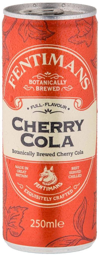 Fentimans, Cherry Cola — первая в мире кола, сваренная методом ботанического пивоварения. Этот безалкогольный напиток создан на основе ферментированного сока имбиря, травяных экстрактов и других полностью натуральных ингредиентов. “Фентиманс” Черри Кола содержит кофеин, дающий легкий бодрящий эффект. Как и большинство напитков "Fentimans", она подходит для веганского рациона.