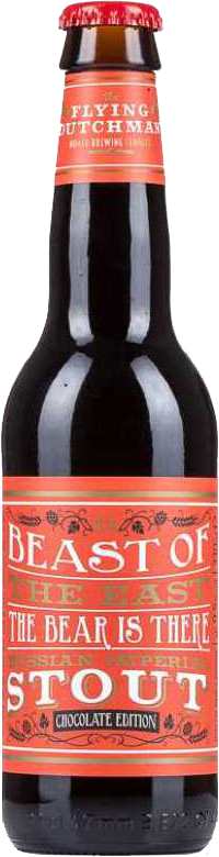 Шоколадный имперский стаут Beast of the East The Bear is there Russian Imperial Stout Chocolate Edition — настоящий тяжеловес, медведь среди ремесленного пива. Приступая к его дегустации, следует соблюдать осторожность, ведь он может сбить с ног и повалить человека на обе лопатки. Этот по-настоящему “зверский” стаут тяжело охмелен сортами Чинук, Коламбус и Сентенниал, обеспечивающими ему горечь 90 IBU. Его полный и бархатный вкус происходит от созревания на бобах какао, стручках ванили, палочках цейлонской корицы, чипсах американского дуба и мексиканского копченого перца чипотле. Мягкий и полный вкус пива Бист оф зе Ист Зе Бэр ис зер Рашн Империал Стаут Чоколет Эдишн может ввести в заблуждение, на самом деле оно обладает мощным и бескомпромиссным характером.