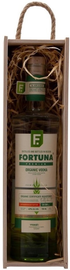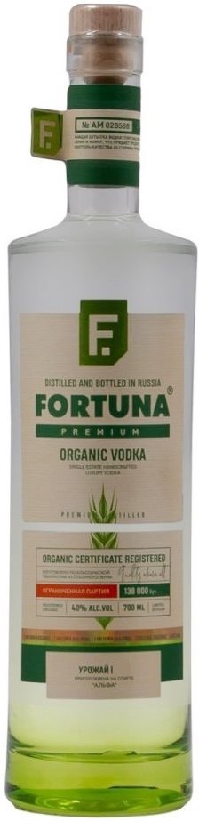 Водка премиум класса Fortuna "Organic" изготовлена вручную из лучших сортов зерна с применением высоких технологий. Каждый этап производства этой водки — от подбора ингредиентов до процесса розлива — прошел сертификацию на соответствие требованиям органической продукции. Водка Фортуна "Органик", в основе которой лежит спирт вышей категории "Альфа", выпускается ограниченной серией в 138 000 бутылок из-за небольшого количества производителей органической пшеницы. Каждая бутылка имеет порядковый номер, а на этикетке указан год сбора урожая органической пшеницы.