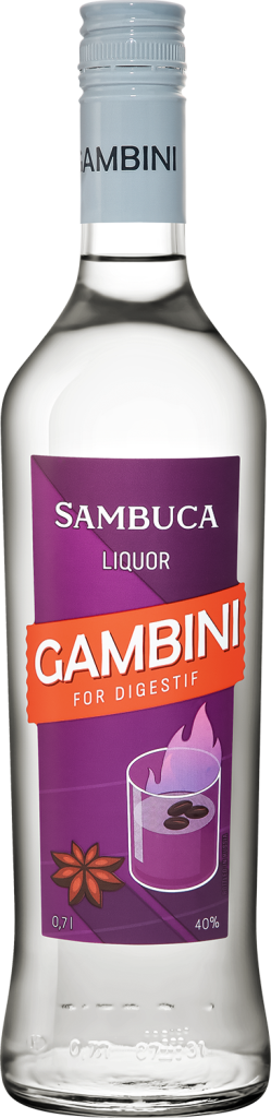 Gambini, Sambuca — крепкий ликер, идеальный дижестив. Особое внимание уделяется подбору качественной основы для ликера. "Гамбини" Самбука — натуральный продукт на основе настоев специй, таких как анис, кардамон и бадьян, которые формируют вкусовой и ароматический профиль напитка. Оригинальная рецептура, ингредиенты высокого качества и тщательно подобранные пропорции гарантируют высокое качество ликера. Легкая фильтрация перед розливом позволяет добиться однородности и чистоты цвета.