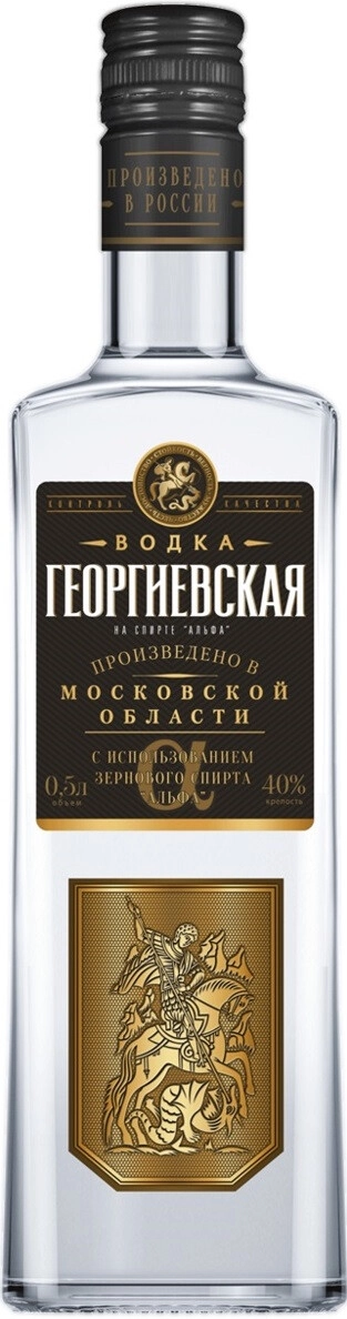Для создания водки "Георгиевская" Альфа производитель использует спирт класса "Альфа", значительно превосходящий спирт класса "Люкс" по своим физико-химическим свойствам, что обеспечивает водке значительное превосходство и большую ценность в линейке "Георгиевская". Водка "Георгиевская" Альфа выпускается на Георгиевском ЛВЗ, контролируемом Мариинским ЛВЗ.
