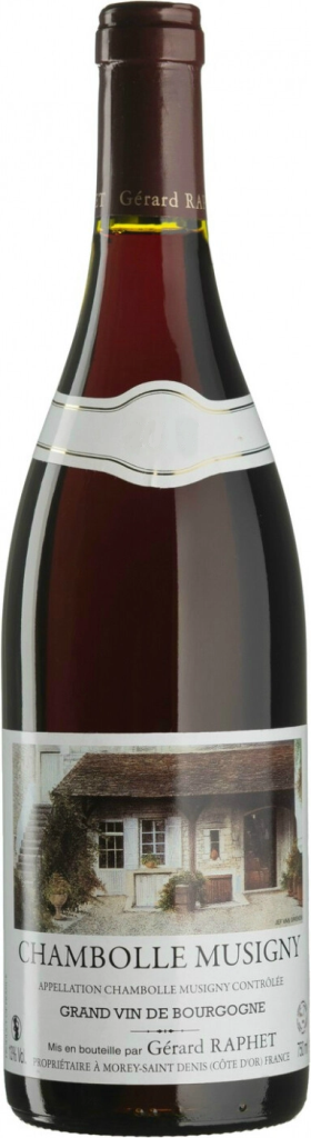 Gerard Raphet, Chambolle Musigny — ароматное, округлое вино высокого класса. Виноград сорта Пино Нуар для изготовления этого вина выращивается в северной части очень успешного и надежного апелласьона Шамболь-Мюзиньи, на границе с Морэ-Сен-Дени в субрегионе Кот де Нюи. Как и почти все вина северной части Шамболь-Мюзиньи, оно обладает прекрасной свежестью, питкостью и достаточной легкостью. Название коммуны Chambolle происходит от латинского Campus Bellenos (в переводе — поле Беллена, галльского божества горячих источников и врачевания). Это отсылка к потокам воды, которые стекают по местным склонам после проливных дождей, когда близлежащий ручей Гроне выходит из берегов. Климат в Шамболь-Мюзиньи, как и во всем департаменте Кот д'Ор, континентальный. Сезонные и суточные колебания температуры помогают сбалансировать содержание кислот и сахара в винограде. Урожай собирается вручную по достижении ягодами оптимальной спелости. Ферментация с натуральными дрожжами протекает в стальных танках при контролируемой температуре. Для выдержки, которая занимает 18 месяцев, используются французские дубовые бочки, 15-20% из которых обновляются ежегодно. Перед розливом Шамболь-Мюзиньи не фильтруется и не осветляется.