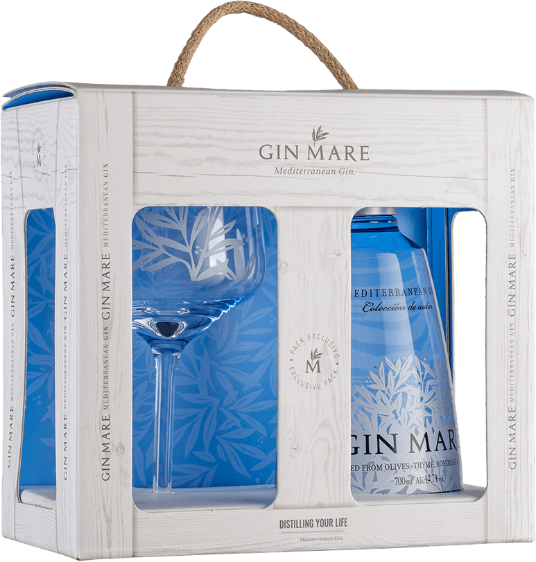 Gin Mare — уникальный средиземноморский джин, созданный в крафтовом стиле из отборных ингредиентов. В его производстве используется ячменный спирт, оливки сорта Арбекина, цитрусовые и различные травы (тмин, розмарин, кардамон, базилик и др.). В переводе с латинского "mare" обозначает "море". Элегантная бутылка нежно-голубого оттенка символизирует гармонию моря и неба, а изображение листьев оливок в минималистичном стиле дополняет оригинальный стиль напитка. Особое внимание стоит уделить колпачку — он имеет объем 50 мл и может использоваться как мерный.
