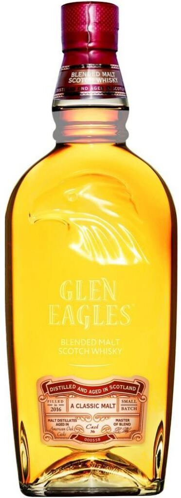 Glen Eagles, Blended Malt Scotch Whisky, 3 Years Old — купажированный солодовый виски, который был выдержан в течение 3-х лет в отборных бочках из-под бурбона и 250-литровых хогсхедах из американского дуба на территории Шотландии. Основу купажа составляют солодовые дистилляты от известной дистиллерии Loch Lomond. Натуральность, следование традициям шотландского вискокурения и инновационный подход — ключевые принципы, лежащие в основе создания виски "Glen Eagles". Каждый этап производства виски проходит под чутким контролем специалистов. Виски розливается в фигурную бутылку из тяжелого стекла, декорированную золотом и объемным изображением орла — птицы, которая охраняется законами Шотландии. Такой дизайн подчеркивает премиальность продукта и делает его прекрасным презентом для ценителей и гурманов.