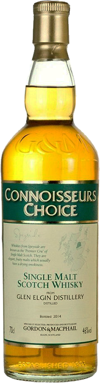 Glen Elgin "Connoisseur's Choice", 1998 — новинка в серии "Выбор знатока", прекрасный односолодовый виски с достаточно насыщенным вкусом и пряным послевкусием. После дистилляции виски выдерживался в бочках из-под хереса и был разлит по бутылкам при достаточно высокой крепости в 46%. Розлив состоялся в 2014 году.